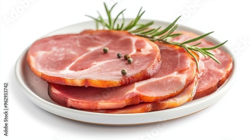 Slices of ham. Set of fresh slices of Ham isolated on background. Ham on the plate