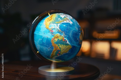 small blue and green marble ball on white surface, 3D icon of globe symbolizes global connectivity