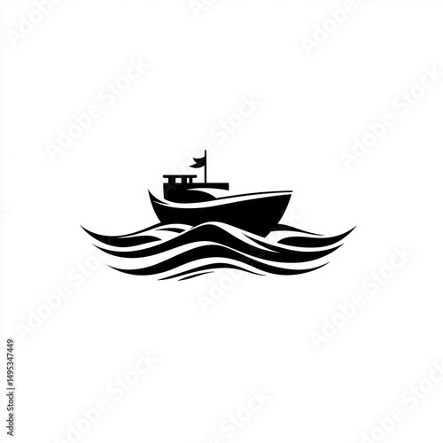 Small boat sailing on wavy ocean, calm sea background, nautical illustration