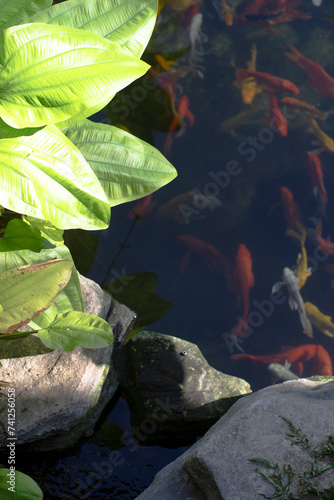 :Small fish in the lake come in a variety of colors,High angle view of fish swimming in lake,Full frame shot of koi carps swimming in pond