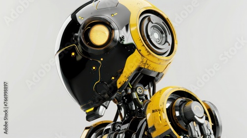 small patrol robot Shiny android with yellow-black details.