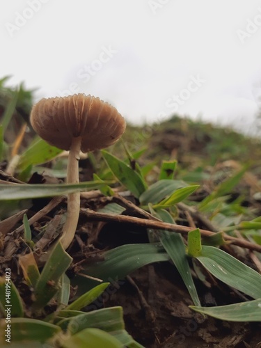 Small poisonous mushrooms grow in nature after the rain.