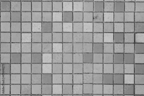 small square tiles in bathroom. black and white tiles. Old tiles