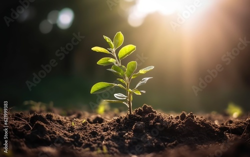 Small tree growing with sunshine in garden. eco concept, Generative AI