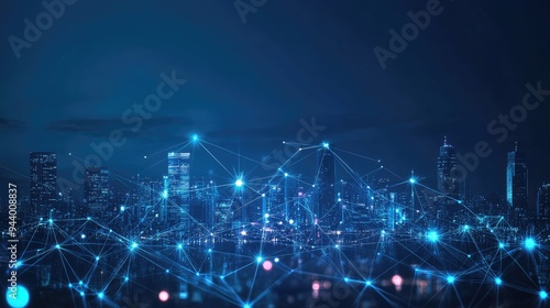 Smart city and abstract polygon pattern connection with speed line light, big data connection technology concept .