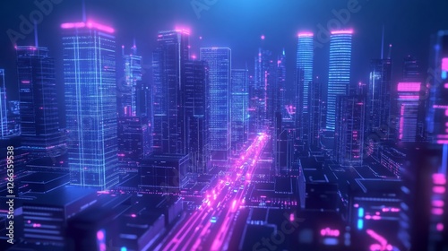 Smart city concept with big data visualization, AI-powered systems analyzing traffic, energy usage, and urban planning in real-time