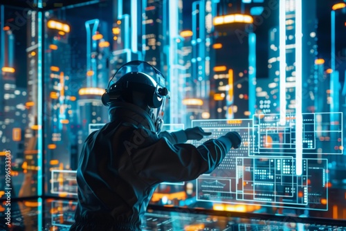 Smart city digital world metaverse, 3D AI artificial intelligence robot engineer digital technology security power energy sustainable environment technology futuristic interface, 3D city interface