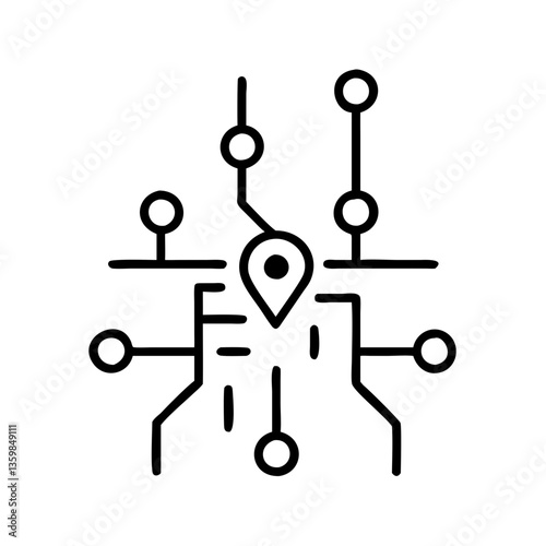 Smart city map with data nodes in minimalist black and white style