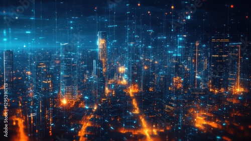 Smart city network protected by AIdriven firewall security, futuristic cyber defense
