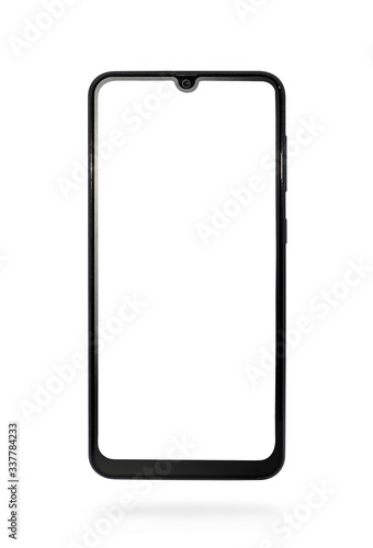 Smart device with blank screen on white background.