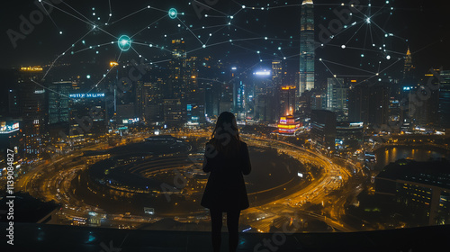 Smart digital city with connection cyber security network reciprocity over the cityscape . future smart wireless digital city and social media networking systems that connects people within the city