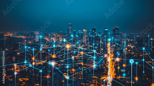 Smart digital city with connection cyber security network reciprocity over the cityscape . future smart wireless digital city and social media networking systems that connects people within the city