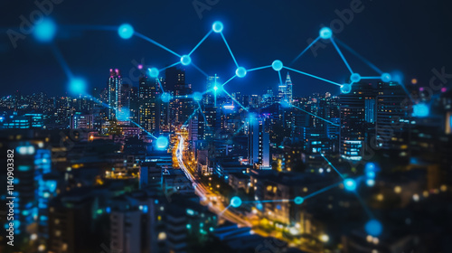 Smart digital city with connection cyber security network reciprocity over the cityscape . future smart wireless digital city and social media networking systems that connects people within the city