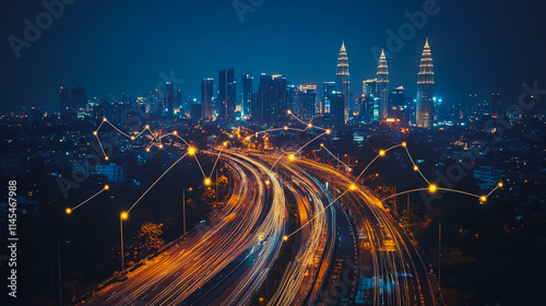 Smart digital city with connection cyber security network reciprocity over the cityscape . future smart wireless digital city and social media networking systems that connects people within the city