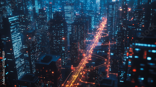 Smart digital Innovation city with connection network reciprocity over the cityscape. of future smart wireless digital city and social media networking systems that connects people with in city