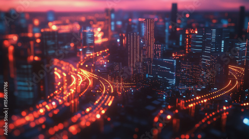 Smart digital Innovation city with connection network reciprocity over the cityscape. of future smart wireless digital city and social media networking systems that connects people with in city