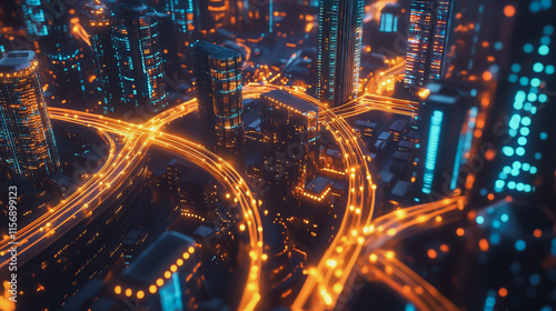 Smart digital Innovation city with connection network reciprocity over the cityscape. of future smart wireless digital city and social media networking systems that connects people with in city