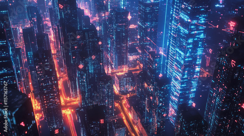 Smart digital Innovation city with connection network reciprocity over the cityscape. of future smart wireless digital city and social media networking systems that connects people with in city