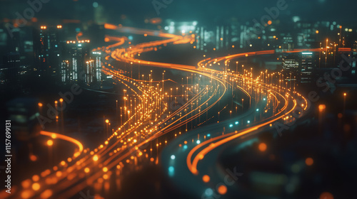 Smart digital Innovation city with connection network reciprocity over the cityscape. of future smart wireless digital city and social media networking systems that connects people with in city