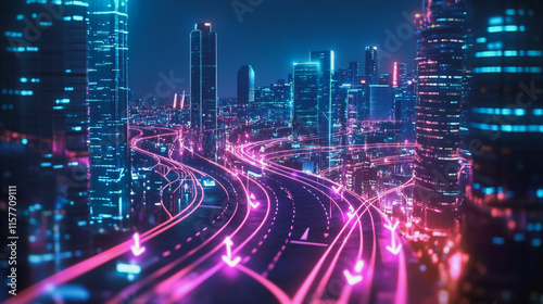Smart digital Innovation city with connection network reciprocity over the cityscape. of future smart wireless digital city and social media networking systems that connects people with in city