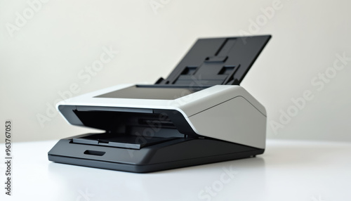 Smart Document Scanner on White Background: A modern smart document scanner on a white background, representing office automation and high-tech functionality.