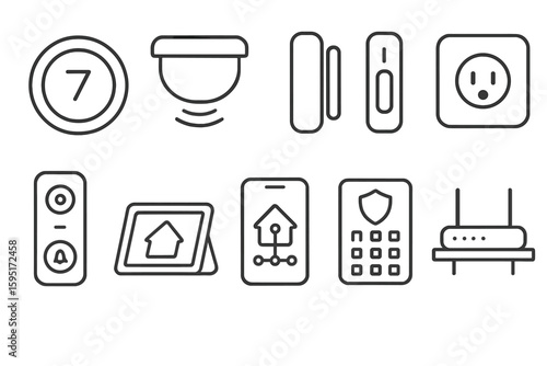 Smart home, security outline icon set. automated devices, protection symbols collection