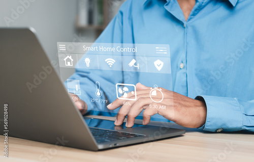 Smart home technology concept. Control all the functions of your home through your laptop. Home automation system. Technology of the future.