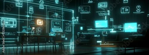 Smart home using the latest technology for automatic household operations, banner made with stock images