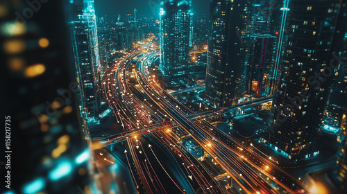 Smart Innovation city with connection cyber security network reciprocity over the night cityscape future wireless digital city and social media networking systems that connects people in the city