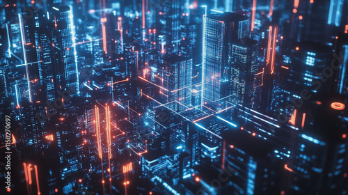 Smart Innovation city with connection cyber security network reciprocity over the night cityscape future wireless digital city and social media networking systems that connects people in the city