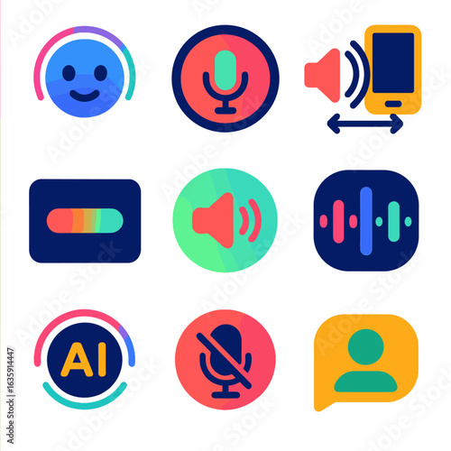 Smart Interface Icons. Flat vector icons of voice assistants and smart interfaces: assistant face animation, digital voice