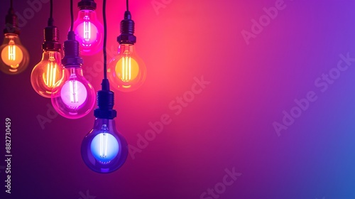 Smart lighting system with colorful LED bulbs, against a dark purple background