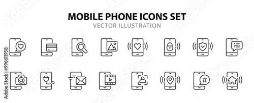 Smart, mobile phone, telephone connection. Line icon set. Web icons in linear style for mobile application and web site. Outline pictogram
