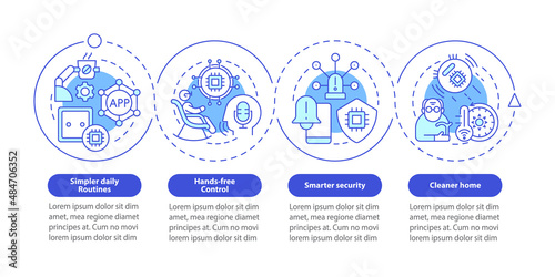 Smart technology for seniors blue circle infographic template. Data visualization with 4 steps. Process timeline info chart. Workflow layout with line icons. Myriad Pro-Bold, Regular fonts used