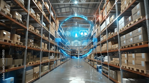 Smart warehouse management system, IoT devices, warehouse technology smart data, icons