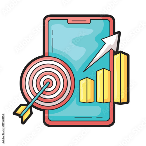 Smartphone displays show target arrow and upward trending bar graph, perfect for business presentations and marketing materials