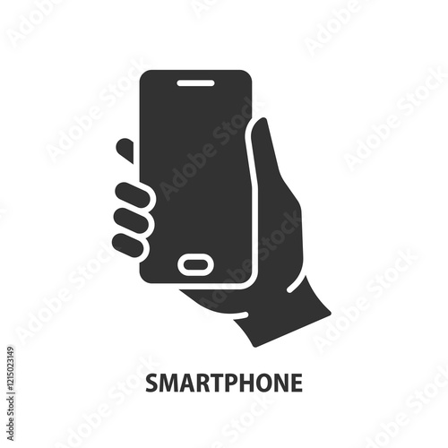 Smartphone glyph icon. Mobile phone in hand vector symbol.