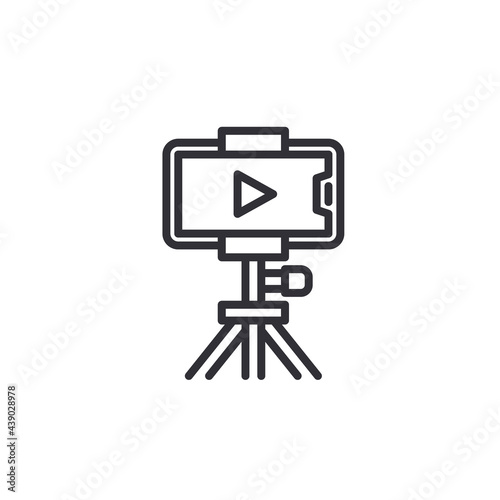 smartphone is black. with a tripod. for smartphone icons, symbol. Video Streaming on Smart Phone with Tripod Icon. mobile phone on tripod, line icon