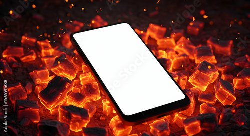 Smartphone Mockup Burning Embers Hot Coal Fire Technology Background