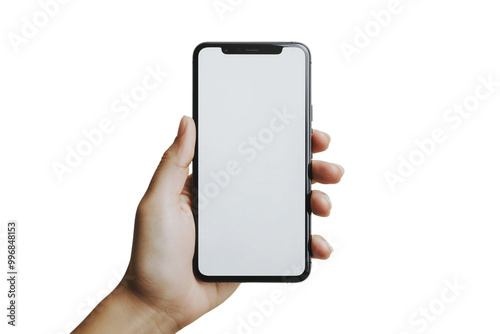 Smartphone Mockup Held in Hand, Isolated Mobile Device for App Display and Digital Technology, Perfect for Tech Designs and Mobile Templates