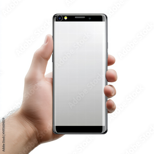 Smartphone Presentation: A close-up shot showcases a modern smartphone held in a human hand, emphasizing its sleek design and the potential for interactive digital experiences.