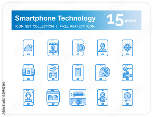 Smartphone Technology Icons Set. UI Pixel Perfect Well-crafted Vector Thin Line Icons. The illustrations are a vector.