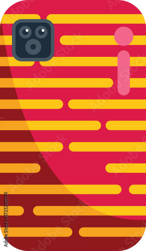 Smartphone with a stylish protective case featuring a vibrant color scheme and a unique design element