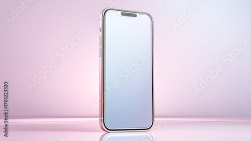 Smartphone with blank screen on pink background with copy space for text or advertising. Modern mockup for presentations, applications and design.