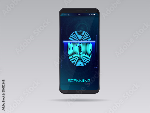 Smartphone with finger scan. HUD interface. Stock vector illustration.