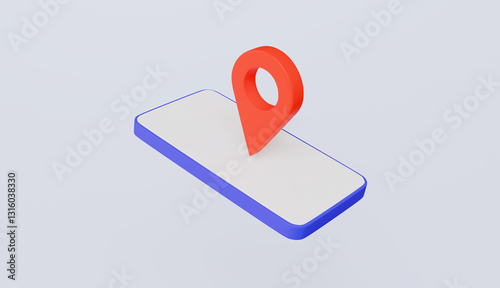 Smartphone with location pin icon, marking position, trip destination 3d illustration