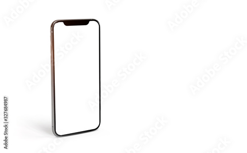 Smartphone with transparent display on white isolated background. White screen. Place for template. Mobile phone mockup