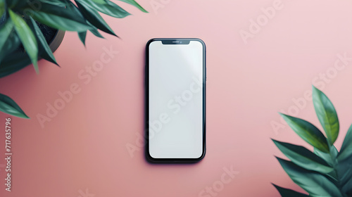 smartphone with white blank screen on workspace desk, smartphone mockup