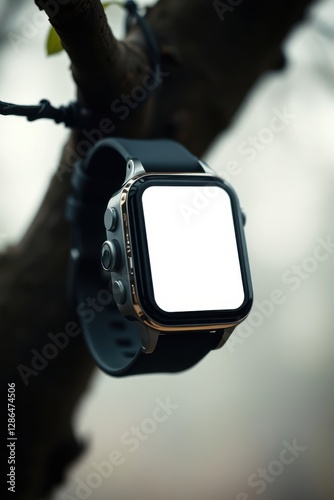 Smartwatch display showcasing a modern digital wearable device with a blank screen for customization.