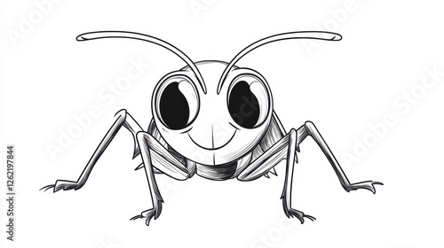 Smiling Cartoon Ant Character with Large Eyes and Simple Design